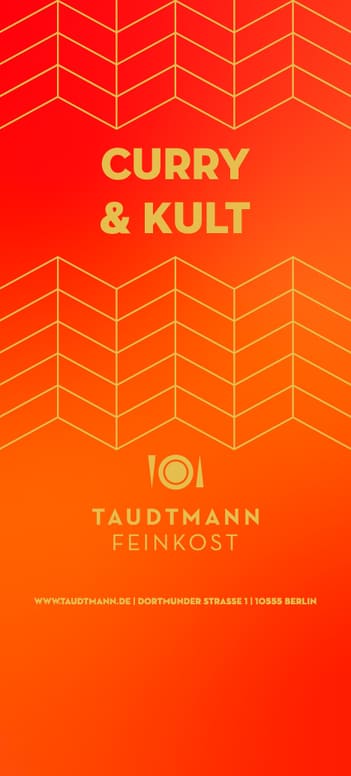 Leuchtend orange und gold – eine Hommage an Berlin und seine Currywurst-Kultur. Die „Curry & Kult“-Banderole steht für Geschmack, Lebensfreude und Hauptstadtgeschichte.