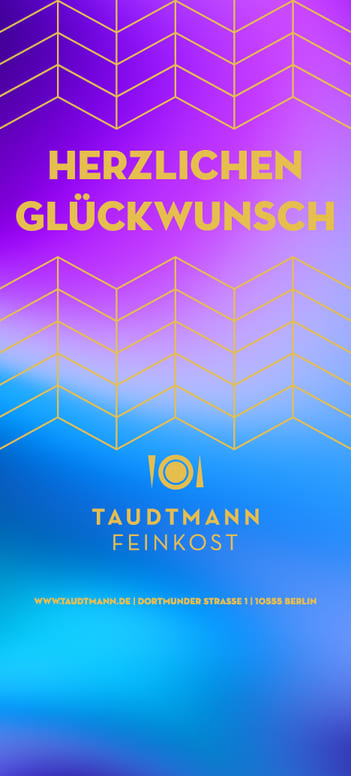 Unsere Taudtmann Feinkost-Banderolen können personalisiert und individuell für Sie produziert werden – mit eigenem Logo, Design oder Grußtext. So entsteht eine ganz besondere Verpackung, die perfekt zu Ihrem Unternehmen, Anlass oder Ihrer Marke passt.