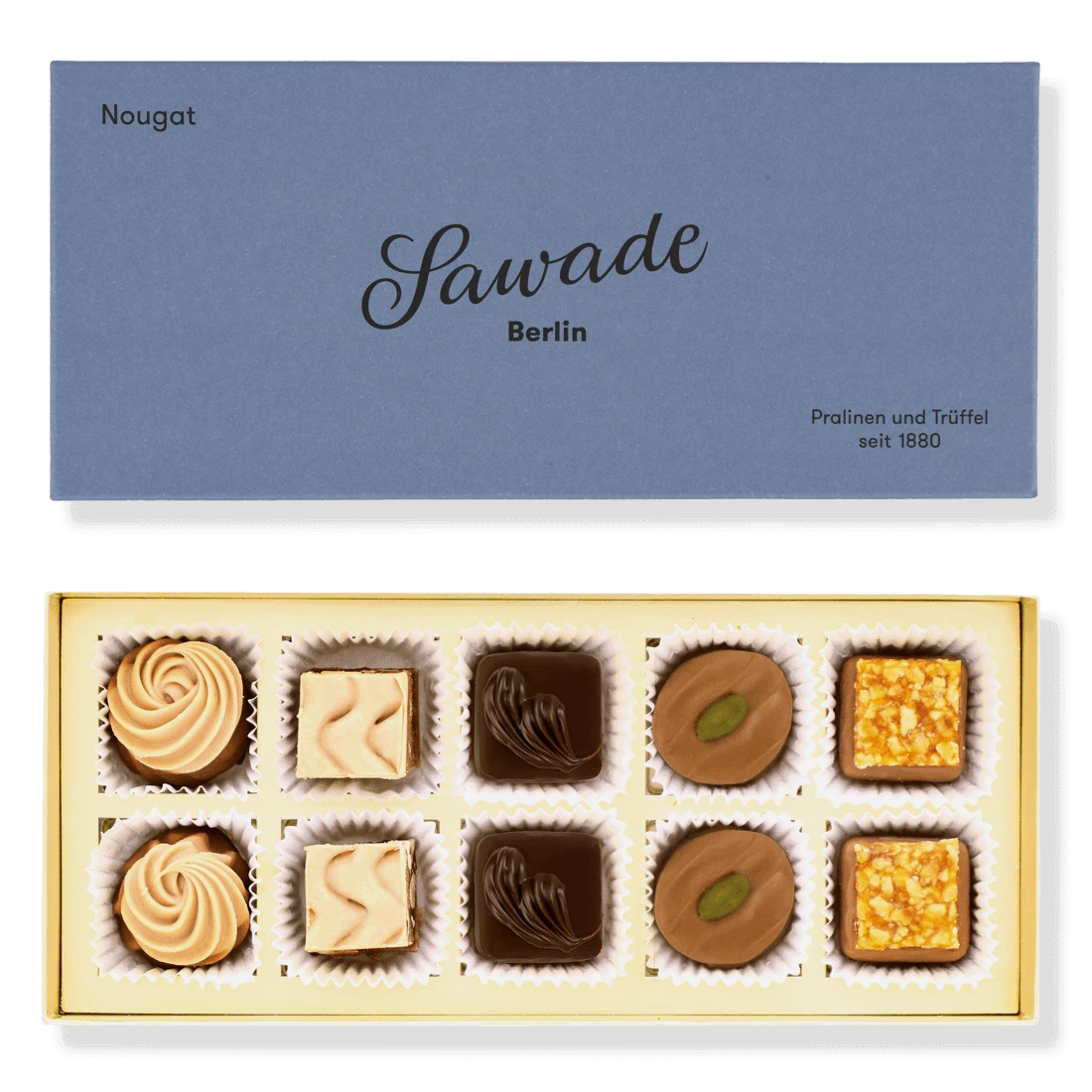 Diese Pralinen sind nicht nur ein Genuss für den Gaumen, sondern auch eine Hommage an die Tradition und das Erbe von Sawade, einer der ältesten Confiserien Berlins. Mit jedem Bissen dieser Nougatpralinen erleben Sie die Leidenschaft und Hingabe, mit der diese Schokoladenkreationen hergestellt werden.